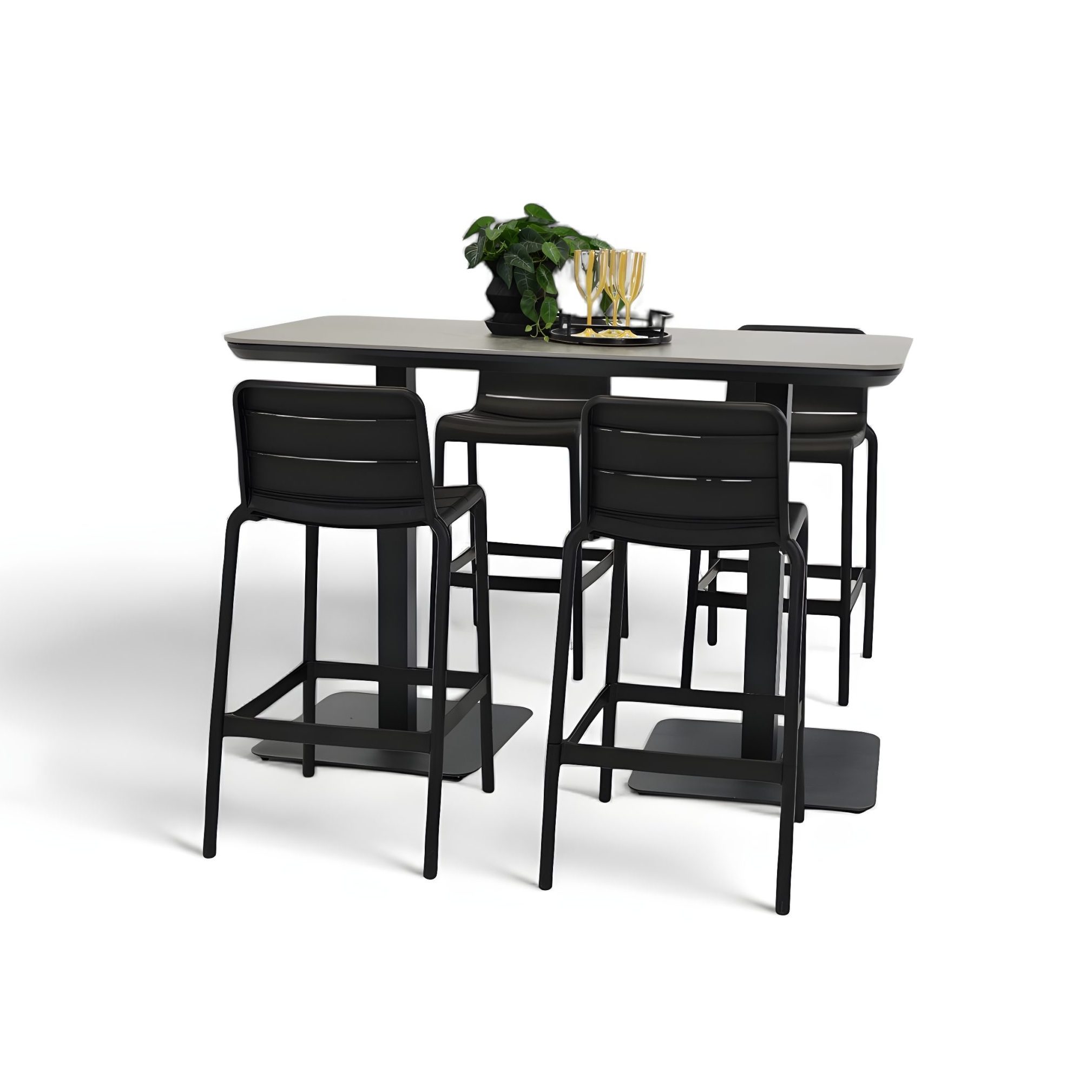 4 Stecca Stools & Argos 1.6m Bar Table Black